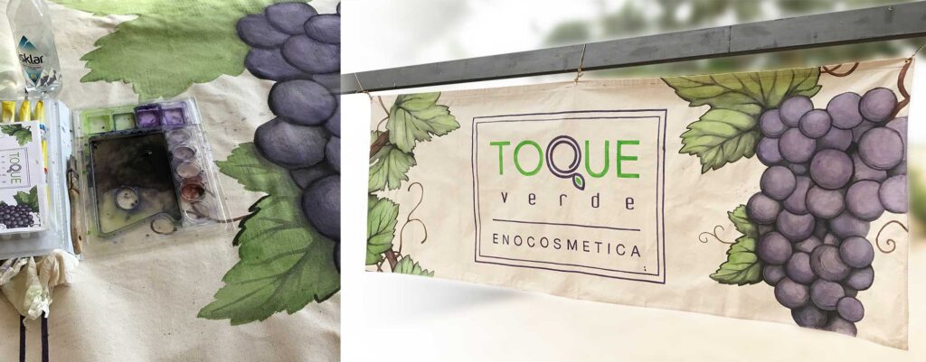 Cuando me dejan, también me meto a carpintera para hacer estos pequeños expositores de producto o a pintora para la realización de una lona a poner en los stands de las ferias artesanales.